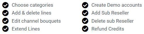After buying an IPTV reseller panel you can get many advantages and use it for the management of your clients. choose categories. add & delete lines. Edit channel list bouquets, and more…
